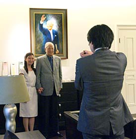 李登輝さんの話は、2時間半続いた。これだけ時間を占有し、お疲れのなか、こんなことまでして良いのだろうかな?なんて思う間もなく「では写真を撮りましょう」李登輝さんからの呼びかけに、全員ツーショット。 李登輝さん自身の気づかいもあったと思いますが、時間が経つほどに、上機嫌になられた。