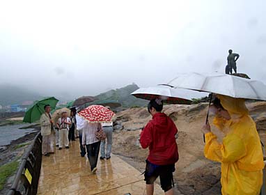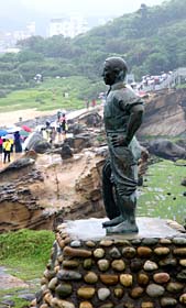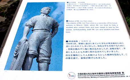 ここに、見学者を見守っているかのような銅像がある。これは波にさらわれた学生を助けようとして海に飛び込んだ方の、精神に哀悼を込めて立てられたもの。