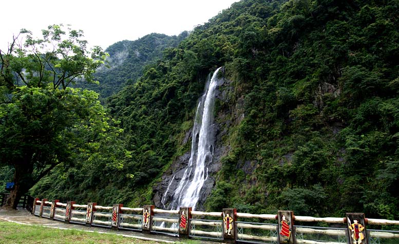 烏来の滝。写真には写っていないが、向かい側の山並みへ上るロープウェイがある。