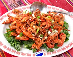 ↑上中、川エビ。上右、コジュケイ。