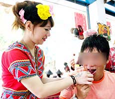 民族衣装の少女と我等会員。 → |