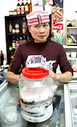 ←左、ハチク(筍)とハヤ(魚)。いずれもこの付近で取れるもの。