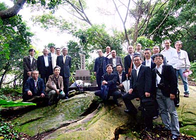 岐阜李登輝友の会田代名誉会長、村上支部長による献花の後、全員で六氏先生のお墓を囲んでの撮影。