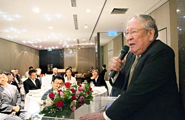 若い女性を口説く老紳士・・・ではありません。司馬遼太郎「台湾紀行」に登場する「老台北」こと蔡焜燦先生。左側の女性は、かの劉さん。この日は、この蔡焜燦先生と台湾独立連盟主席、黄昭堂先生を囲んでの夕食会という豪華版。凄い顔ぶれです。