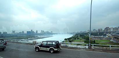 台北のシンボル、淡水川を渡る。東京なら江戸川、大阪なら淀川、岐阜なら長良川、ニューヨークならハドソンリバーか・・・。そして着いたのが十三行博物館。貝塚など、台湾原住民のルーツを探る遺跡である。自然をイメージした建物であるが、平衡感覚がなくなりそうだ。 |