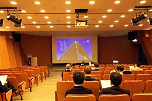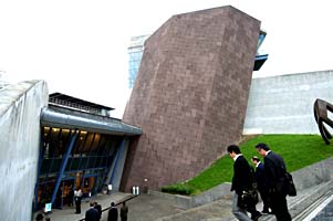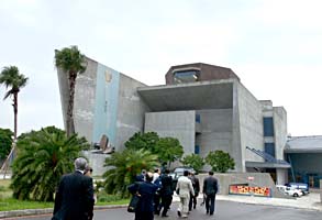 本館の建築設計理念は、考古発掘及び先住民が船で海を渡ってきたことをふまえ、全館は三つの異なる建築テーマからなっています。つまり山と海、過去と現在のイメージで、選りぬきの材料を使っています、例えば、コンクリートに、砂岩と老化した金属板などをまぜ合わせた完璧な構築理念です。
