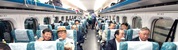 台湾新幹線車輌内。JR東海「のぞみ」と殆んど同じだが座席の前後の空間が少し広く感じます。 |