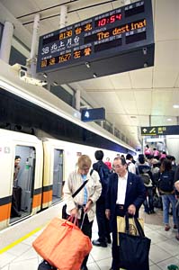 | 新幹線駅は左營が終点。将来的には、高雄まで行くそうで、この流れは、高雄からみた台北の手前「板橋」が先に開業したのと同じだそうだ。 |