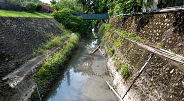 左:↑奥田(梶jがドイツから取り寄せたようだ。 中:↑この水路が美濃一帯を潤した。 右:現在の発電機↑ |