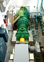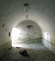 ドイツ製発電機4基200kW/hの出力。 写真右は、工場内にある防空壕内側。小窓から見た状態。 |