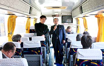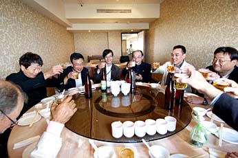 ガイドの劉さんともこれが最後。劉さんのペンダントは布袋様。社章だそうですが、劉さんの顔そのもの。通常の観光ではない「李登輝友の会」のガイドはこの上ない喜びだったそうです。 |