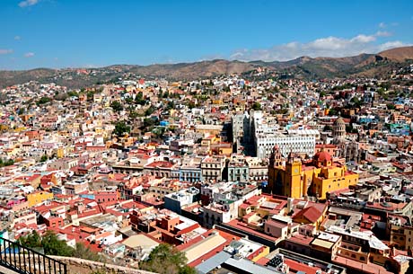 街全体が世界遺産に登録されているグアナファト市。鮮やかな建造物が立ち並んでいますが、世界遺産登録以前は経年変化でもっと落ち着いた色調だったそうです。