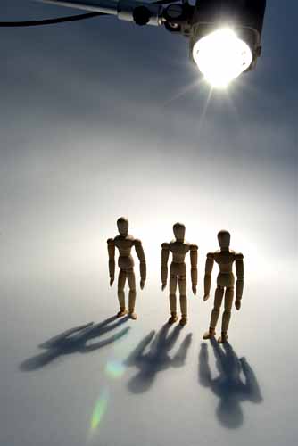と影の先端を結ぶと自ずとその間には、人形の部位があり一直線で結ばれる。