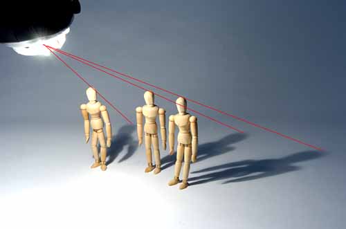 より左に位置するものは、影はより左に伸び、右に位置すれば、より右に伸びる。これは太陽でも人口光でも同
