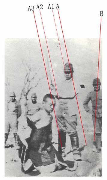 ちなみに著者の指摘にも影についての指摘がある。内容は“写真Aが斬首前、Bが斬首直後であるにもかか