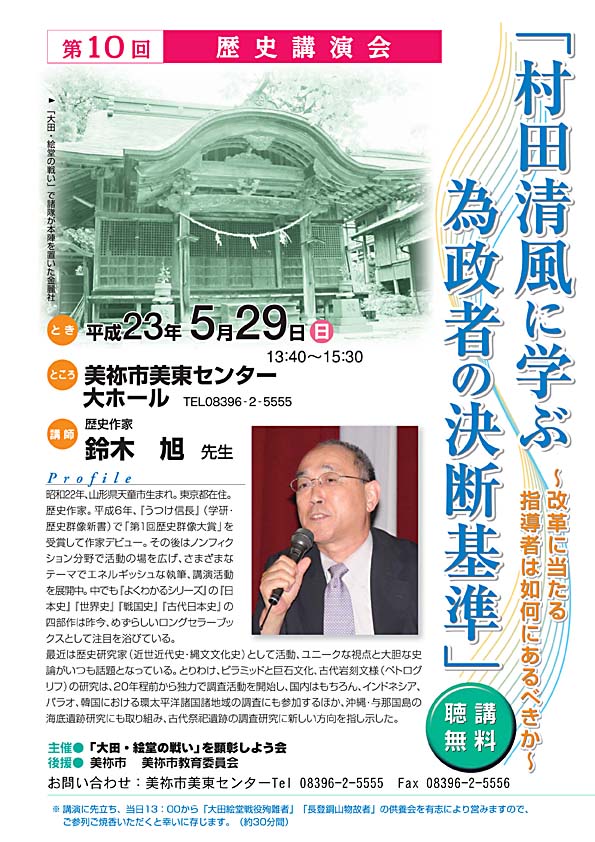 平成23年大田絵堂の戦い、歴史講演会ニュースレターpdfは、こちら